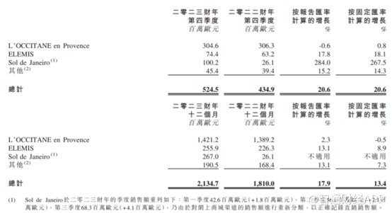 其他品牌亦有所改善,2023财年按固定汇率计算增长7.3%。Erborian及L’OCCITANE au Brésil表现尤其出色,在2023财年按固定汇率计算分别增长33.4%及41.2%。
