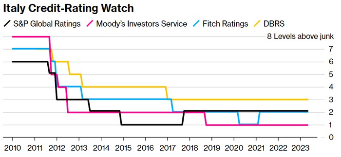 意大利主权评级没有被下调,这避免了该欧元区第三大经济体的金融市场紧张。给一个国家贴上垃圾评级的决定可能会带来严重后果,例如,2010年标普下调希腊主权评级,预示着欧洲主权债务危机进入了一个新阶段,希腊为此付出了代价。