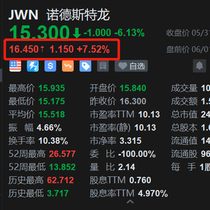 诺德斯特龙盘前涨7.5% 上季收入胜预期 维持年度业绩预测不变