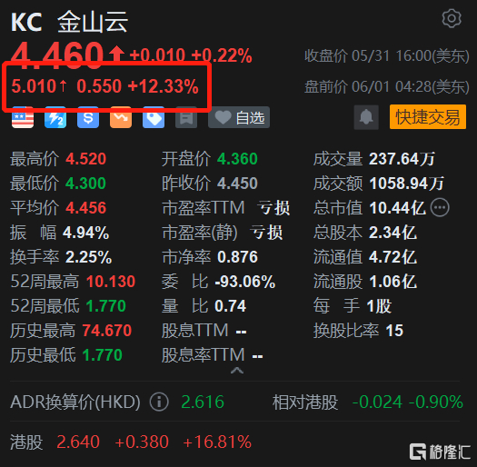 金山云盘前涨超12% H股今日大涨16.8%