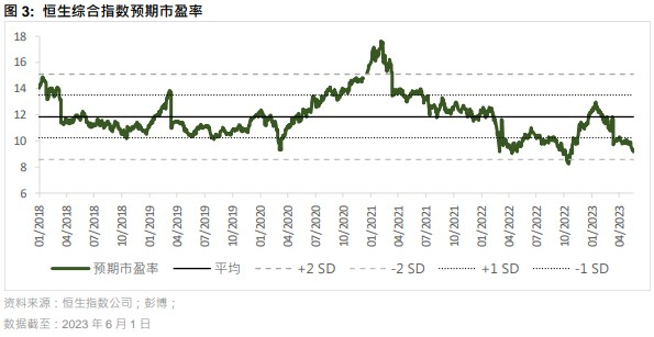 6月6日,恒生指数公司发表网志指出,从多元资产的角度来看,市场对美联储转向的预期或会带来债券收益投资的复苏,多于股票投资。由上而下分析:“债券股票收益比率”(BEER)把已上调的债券收益率纳入考虑,故投资者可以将股票估值与债券收益率进行比较。从跨资产角度来看,香港市场的BEER比率已改善至0.40,但理论上相较债券收益,股票仍处于被低估区间。另一方面,从历史估值来看,香港股市目前的估值为预期市盈率的9.2倍,低于5年平均的1倍标准差。其中,年初以来跑赢大市的能源和电讯业的估值分别为预期市盈率的5.2倍及9.9倍,还是低于5年市盈率平均值。