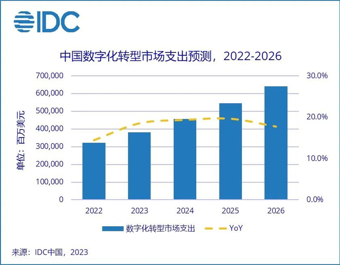 IDC:到2026年中国数字化转型支出规模预计超6000亿美元 5年复合增长率将达17.9%