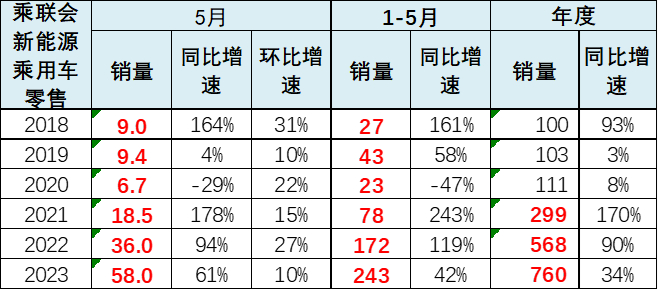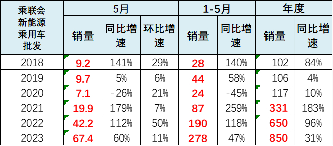 1-5月新能源乘用车批发销量达到278万辆,同比增长47%。