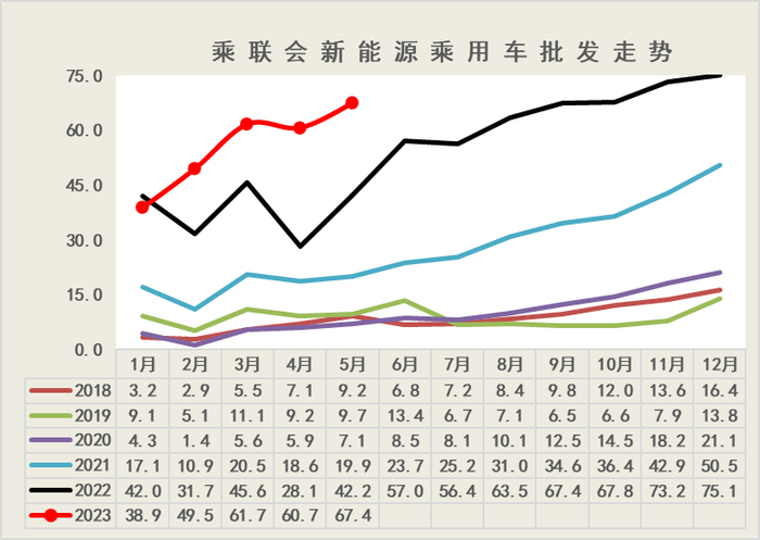 5月新能源乘用车批发销量达到67.4万辆,同比增长60%,环比增11%。