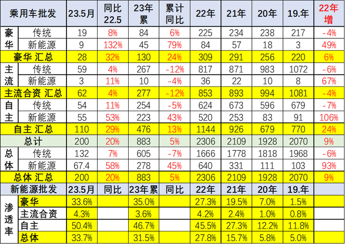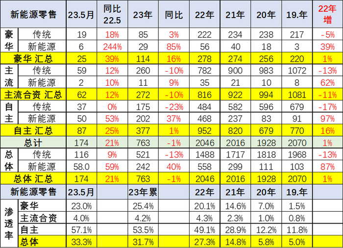 5月,自主品牌中的新能源车国内零售渗透率57.1%;豪华车中的新能源车渗透率23%;而主流合资品牌中的新能源车渗透率仅有4.0%。