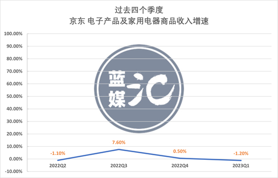 财报显示,过去四个季度,京东电子产品及家用电器商品收入的增速分别为 下滑1.1%、7.6%、 0.5%以及下滑1.2%,出现了明显的颓势。