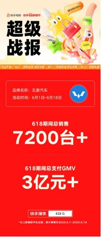 快手、五菱打造线上卖车新高度:7200辆车、销售额超3亿元