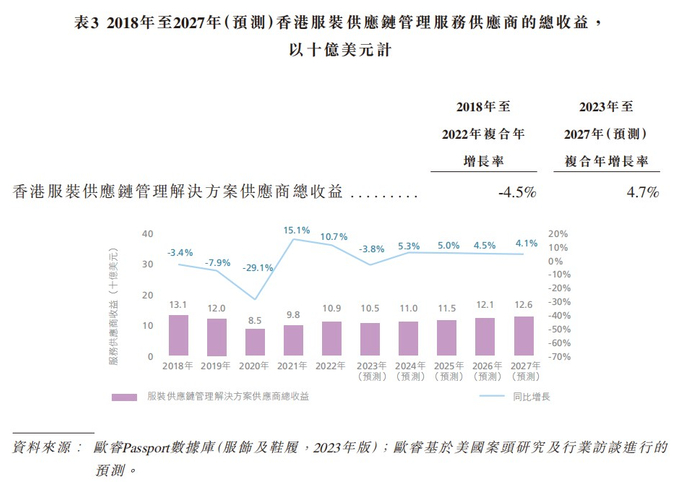 由于香港的服装供应链管理市场主要服务于来自美国或欧洲的零售商或服装品牌, 终端消费者或零售市场普遍依赖海外需求。于过往期间,由于疫情、全球经济低迷、 全球政治冲突不断等因素造成的不确定性,导致消费者信心普遍疲软,且通货膨胀率居高不下(特别是在美国及欧洲),消费者在服装等可支配产品上的支出减少,因此影响了对服装供应链管理解决方案的普遍需求。美国的政治手段亦反映在其与关键制造业市场(中国)展开贸易摩擦。可见,严重依赖海外需求也或将成为后续制约其业绩增长的潜在不利因素。