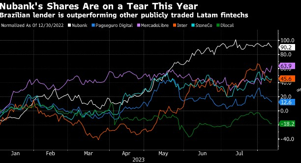 提供贷款、信用卡和支付服务平台Mercado Pago的营收在零售商MercadoLibre第二季度营收中占比约为44%,高于上年同期的31%。但在2023年更具挑战性的环境、更高的融资成本和巴西家庭债务不断增加的情况下,预计Mercado Pago的新贷款将放缓。其33亿美元的信贷投资组合低于Nubank的128亿美元。