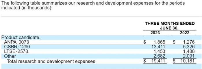 从费用端来看,公司Q2季度对GSBR-1290的研发支出已达到1341.1万美元,同比增长151.8%,占当期总研发费用的69.1%。