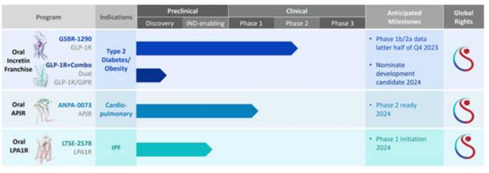 智通财经了解到,硕迪生物主要聚焦于GPCR高难度靶点,首发管线为小分子GLP-1R激动剂,还有GLP-1R/GIPR双靶点激动剂,后续管线还有APJR、LPA1R等。其中,核心产品GSBR-1290是一种口服的GLP-1受体小分子激动剂,该受体是治疗2型糖尿病(T2DM)和肥胖症的有效药物靶点。