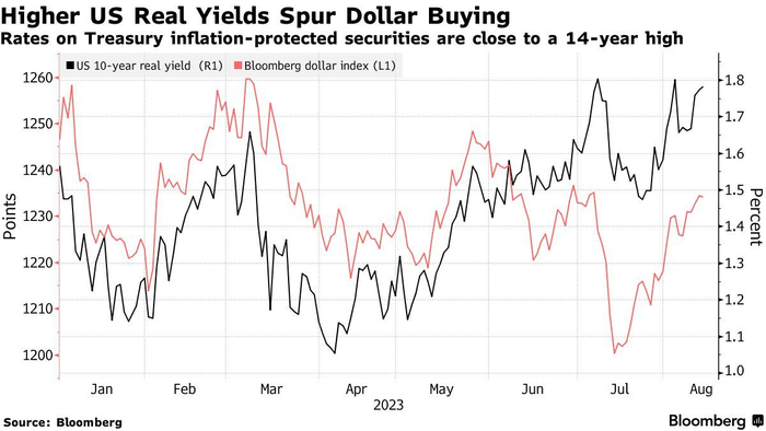 智通财经了解到,10年期美国国债实际收益率在周一一度升至1.78%,逼近2009年以来的最高水平。强劲的正向回报率带来的巨大诱惑力正推动资金重返美元,衡量美元对其他主要货币的相对强弱指标——美元指数(Dollar Index),已从上月的一年多阶段低点延续涨势,自阶段性低点以来强势反弹3%左右。一些华尔街交易员押注,在未来很长一段时间里,美国利率水平仍将高于通胀率,这将推动美元兑一些主要货币的汇率再创新高。