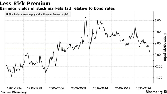 至于美股市场,格罗斯表示,以企业盈利收益和债券收益率之差衡量的股票风险溢价处于历史低位,这表明美股整体估值太高了。