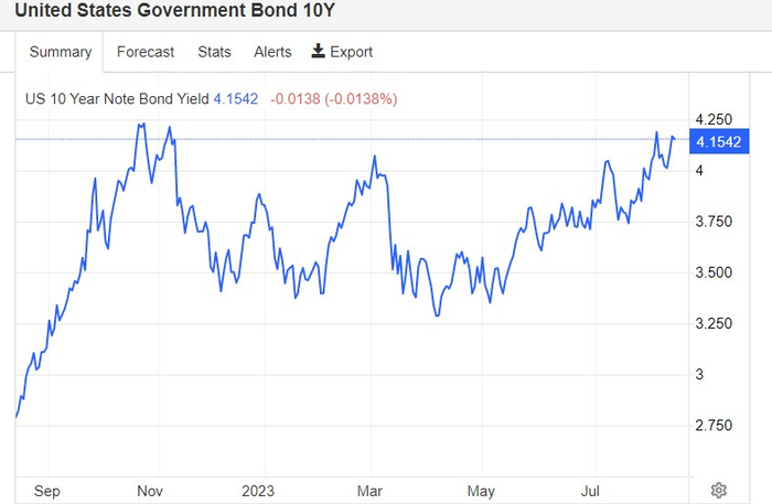 有着“老债王”之称的比尔·格罗斯(Bill Gross)近日表示,美国债务被市场“高估”了,格罗斯预计,10年期美国国债收益率的公允价值约为4.5%,这预示着“全球资产定价之锚”还有不小的上行空间。周一,这一基准收益率曲线已超过3月美国银行业危机导致的高点,距离今年以来的高点4.20%仅一步之遥。