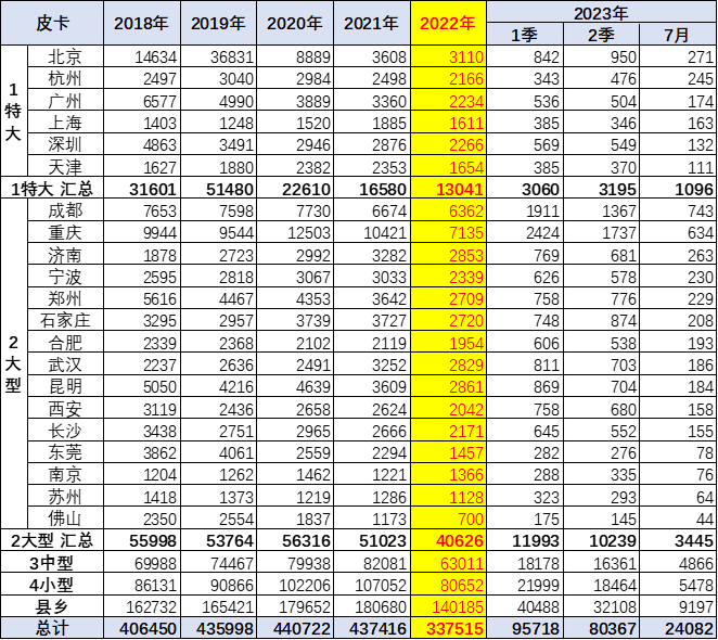 皮卡市场目前主力销售区域还是在以中小城市和县乡市场为主,尤其是县乡市场目前的表现相对来说还是较强。2023年7月的中型城市和北京等限购市场表现尤其突出的特征。而县乡城市市场保持稳定,大城市市场目前来看市场并没有明显的突破特征。