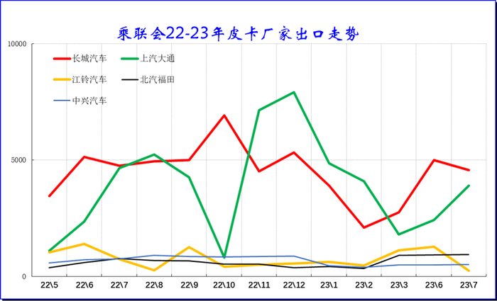随着出口市场的暴增,上汽大通、江淮、长安皮卡快速崛起,形成头部企业挤压尾部企业销量的特征。