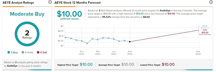 整体来看,这家小型科技公司一直没有受到分析师们重点关注,仅仅有两家华尔街投资机构覆盖到该标的。然而,他们都认为这是一只值得买入的股票,这使得分析师一致同意“适度买入”评级。该股当前交易价格为4.64美元(截至上周五收盘),其10美元的平均目标表明,未来12个月该股还有约115%的潜在上行空间。