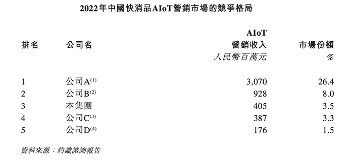 在备受新兴品牌欢迎的同时,公司市场排名也位居行业前列。根据灼识咨询的资料,按2022年收入计,公司是国内排名第三的快消品AIoT营销解决方案提供商,按2020年至2022年AIoT营销解决方案收入增长计,公司在前十大市场参与者(按2022年收入衡量)中排名第一,年复合增长率为18.6%。