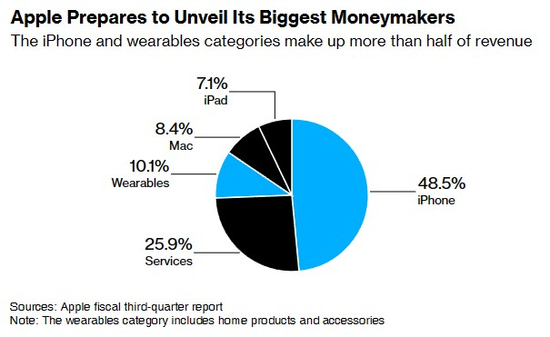 iPhone是苹果最大的收入来源,约占其销售额的一半;如果再加上Apple Watch和AirPods,三者的收入占该公司销售额的60%。如今,全球消费电子行业处于低迷之中,苹果也未能幸免。iPhone的销售放缓拖累了苹果的整体收入,苹果在截至今年7月1日的第三财季连续第三个季度出现销售同比下滑,且类似情况预计将延续至第四财季。