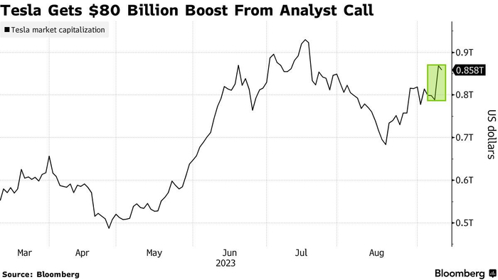 智通财经或许,摩根士丹利分析师Adam Jonas近期对特斯拉(TSLA.US)的未来做出了异常乐观的预测,认为特斯拉Dojo超级计算机将为该公司带来高达5000亿美元的市值增幅。受此消息提振,特斯拉周一大涨逾10%,市值暴增799亿美元至8683.41亿美元。