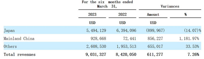 在2022财年中,传丞数字的跨境销售业务收入增长44.22%,综合电子商务服务的收入增长35.12%,这带动公司期内总收入增长42.42%。且从区域来看,期内日本收入增长33.7%,中国大陆收入暴增1614.23%,其他地区收入增长43.08%。显然,中国大陆已成为传丞数字的新增长点。