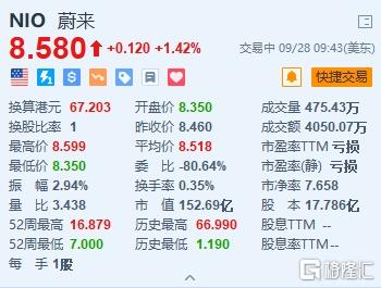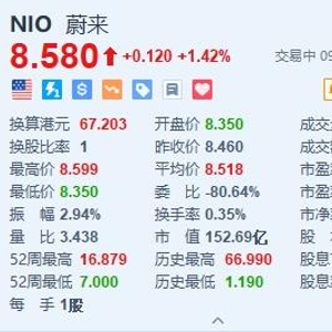 蔚来(NIO.US)快速拉升,涨1.42%,报8.58美元。有消息称蔚来与梅赛德斯-奔驰就投资、技术合作等问题举行了会谈。蔚来否认与梅赛德斯就合作进行谈判,称该消息为“不实”,但未作详细说明。