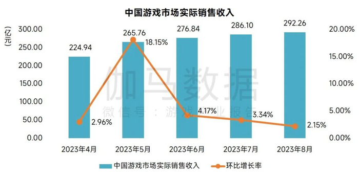 伽马数据:8月中国游戏市场实际销售收入292.26亿元 同比上升46.08%