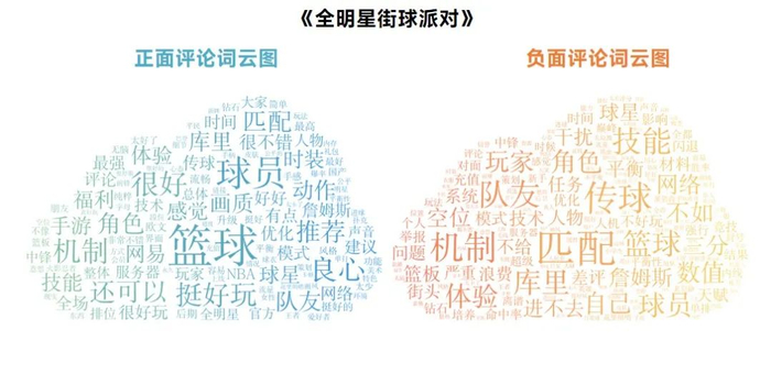 注:正面评论为用户评分4~5的评论,负面评论为用户评分1~3的评论;图中内容为单词筛选后呈现结果。