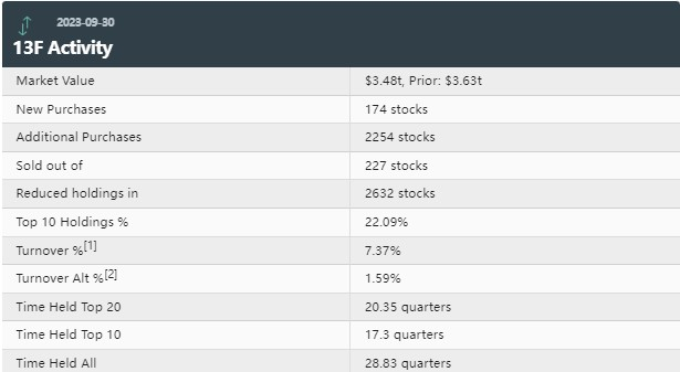 根据美国证券交易委员会(SEC)披露,全球最大规模资产管理机构贝莱德(BLACKROCK INC.)递交了截至2023年9月30日的第三季度(Q3)持仓报告(13F)。