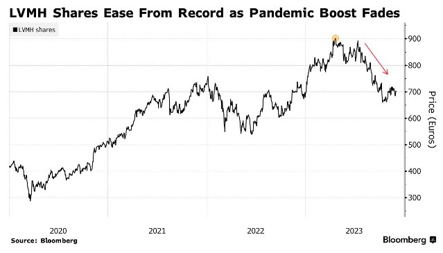 这种谨慎态度也反映在了LVMH的股价上,该公司股价目前已较4月份的纪录高点下跌了23%,今年以来仅上涨2.5%。