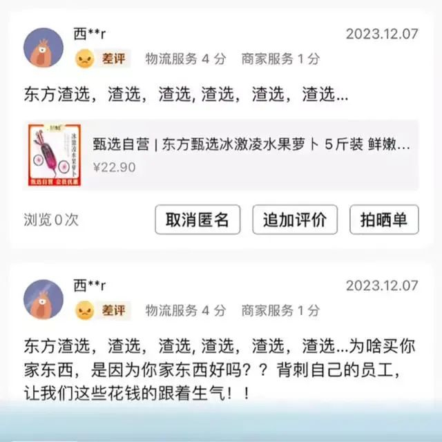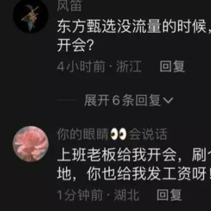 其次是东方甄选CEO 在直播间,用上下级的口吻,称要“给大家开会澄清一下最近的事情”。“东方小孙”的行为,成功地引爆了粉丝们更猛烈的反感:“上班老板给我开会,刷个抖音你给我开会,咋地,你也给我发工资呀!!”“ yue,爹味儿溢出屏幕了,当老板当上头了,给消费者当上了。”