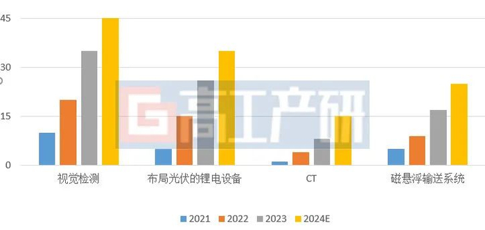 锂电机器视觉检测系统、锂电CT设备、布局光伏、磁悬浮输送系统的锂电设备企业数量(家)