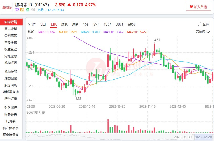 亘喜生物这波“卖身”给港股Biotech打开了一个新思路,即有技术傍身的企业可以寻求MNC收购来缓解资金压力和商业化压力,也正因如此引发多家Biotech企业近日股价上涨。例如,阿斯利康收购亘喜生物的消息传出,推动港股加科思走出六连跌,股价开始反弹。12月28日,加科思(01167)股价最高涨幅达到7.31%;而在美股,康乃德生物在12月26至28日连续3天收涨,盘中最高涨幅达到18%。