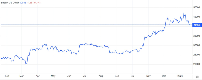 然而自1月11日以来,比特币价格在“买预期卖事实”的这种获利了结情绪之中已经下跌超8%。由于市场自2023年年末以来一直预期ETF最终会得到SEC的正式批准,比特币近几个月在这种呼声中持续暴涨,从10月份的不到3万美元涨至如今的4.1万美元。