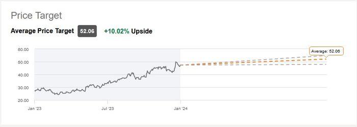 Cameco的股价在2023年累计上涨超90%,今年迄今为止上涨近10%。华尔街分析师对Cameco的平均评级为“买入”,平均目标价为52.06美元,较该股当前股价有逾10%的上涨空间。