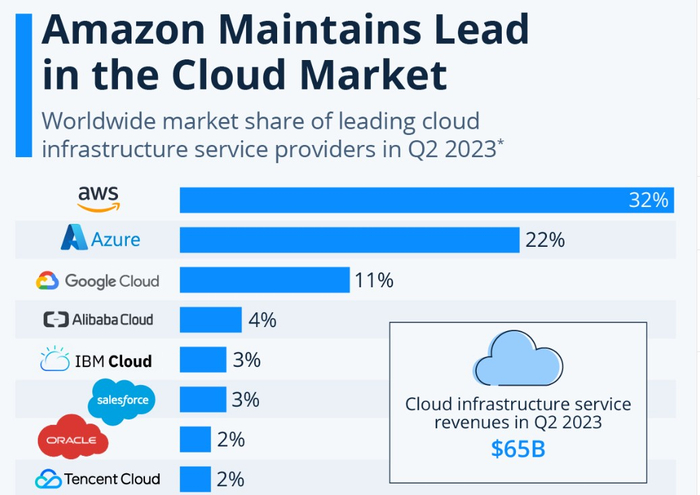 但是来自Insider Intelligence的高级分析师斯基·卡纳维斯(Sky Canaves)表示,这种“温和的加速趋势”仍然让人们对AWS云计算服务能否在与微软Azure和谷歌云等竞争对手的激烈竞争中站稳脚跟产生了一些挥之不去的怀疑。统计数据显示,亚马逊AWS领跑全球云计算服务市场份额,微软Azure云服务则紧随其后。