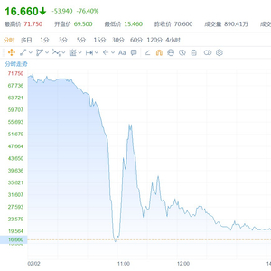 今日中旭未来股价低开1.6%后突现“跳水”行情,盘中一度急泻77%,随后又拗腰急弹,跌幅缩至22%,谁曾想“空头力量”过于强大,至早盘收盘其股价仍大跌超65%。而后,其股价继续下行,截止收盘大跌76.4%,近乎回吐了此前的全部涨幅,报于16.66港元,市值缩水至89.04亿港元。