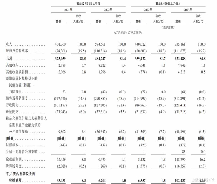 财务方面,于2021年度、2022年度、以及2023年9月30日止九个月,公司的收入分别为4.01亿元、5.95亿元、7.35亿元。同期,公司的净利分别约为3343.1万元、620.4万元及1.02亿元。