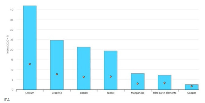 锂有一定的替代风险来自钠离子电池(低端电动汽车和能量存储系统(约10%的需求可由钠离子替代)和人造石墨的片状石墨。替代可能会导致以下需求数字略低。