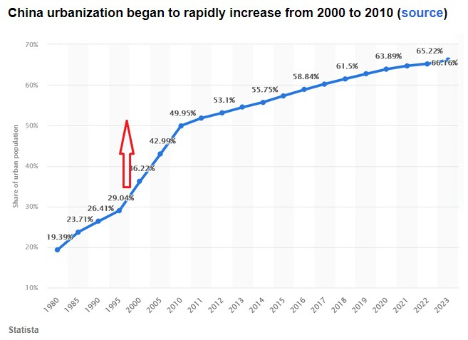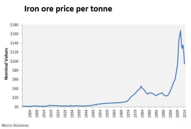 下图显示了中国加快工业化和城市化进程时铁矿石的情况。从2000年到2010年,铁矿石价格不断上涨。