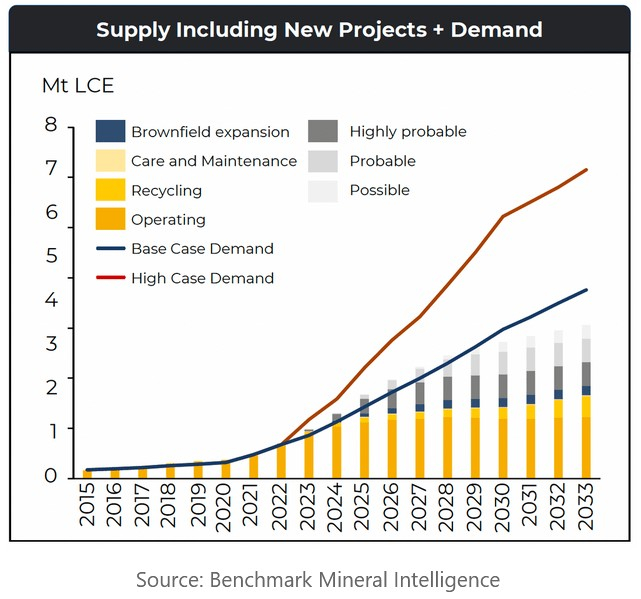 锂供应受到当前生产商扩张和新项目上线的推动。这也取决于锂价是否足够高,以激励(并因此融资)扩张和新生产。按照目前的锂价,许多新项目的动机微乎其微。