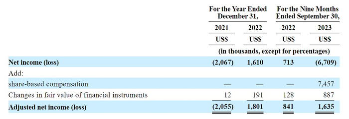 从净利润来看,若剔除基于股份的薪酬以及金融工具公允价值变动这两个影响因素来看,智充科技2021、2022年经调整后的净利润分别为-205.5万美元、180万美元,而2023年前三季度的经调整后净利润为163.5万美元,较2022年同期的84.1万美元同比增长94.41%,这才是智充科技的真实盈利水平,其2021、2022、2022及2023年前三季度的净利率分别为-15.62%、6.12%、4.39%、5.84%。