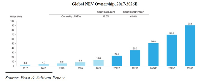 着眼未来,智充科技将从行业的持续发展中获益。据弗若斯特沙利文数据显示,全球新能源汽车销量占比已从2017年的1.6%上升至2021年的10%,其预计2026年将飙升至约42.9%,即全球新能源汽车保有量将从2022年的约2290万辆快速增长至2060年的9050万辆,年复合增速41%。