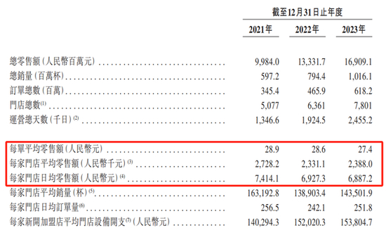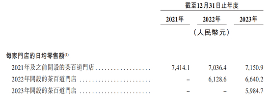 另外,茶百道还提供了另一项数据对比,2021年及之前开设的门店日均零售额达到7414元,而2023年开设的门店日均零售额仅为5984元。