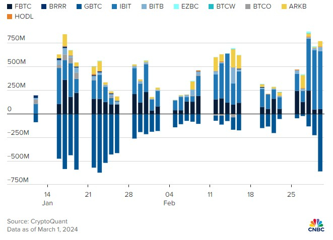 据了解,两种比特币都刚刚结束了近一年来最好的一周——比特币上涨了约21%,以太坊上涨了16%——但在周末暂停了涨势,因为市场消化了Grayscale Bitcoin Trust (GBTC)连续两天的大量资金外流,这些外流被其他“新生”比特币交易所交易基金的资金流入所抵消。