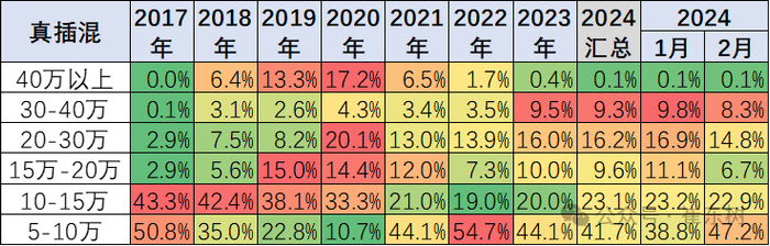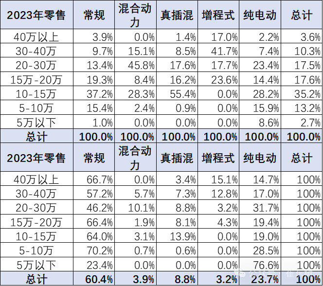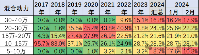 插混车型的增量主要在低价区间,自主的插混技术成熟后,已经在中低价的市场获得较大份额。