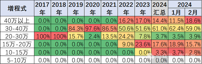 2023年的新能源车占比达到36%的较强比例,2024年2月的新能源车贡献度仍有35%,未来的新能源车贡献度仍将小幅上升。
