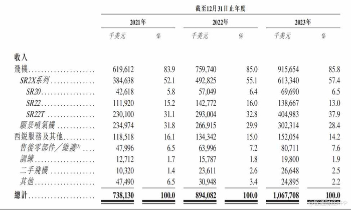 智通财经注意到,西锐飞机的销售及营销开支,从2021年的0.66亿美元增长至2023年的1.07亿美元,年复合增长率达到26.9%,高于同期营收增长速度,也使得期间净利润增长率低于营收增速。
