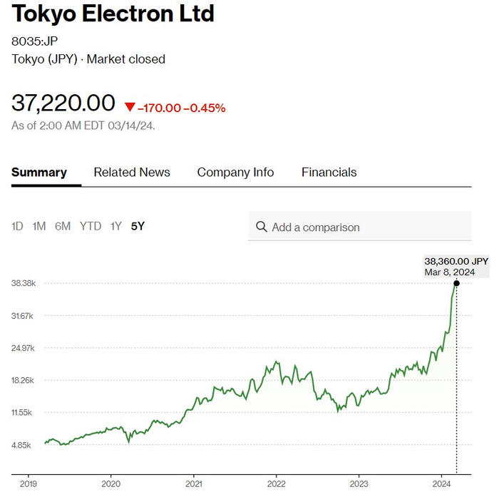 应用材料竞争对手东京电子也获华尔街看好,杰富瑞(Jefferies)近期将东京电子12个月目标价从30000日元大幅上调至42000日元(最新收盘为37220日元),东京电子今年以来股价屡创新高,当前徘徊于历史最高位附近。杰富瑞还看涨受益于AI浪潮的ALD领域领军者ASM International ,予以740欧元目标价(最新收盘为566欧元)。