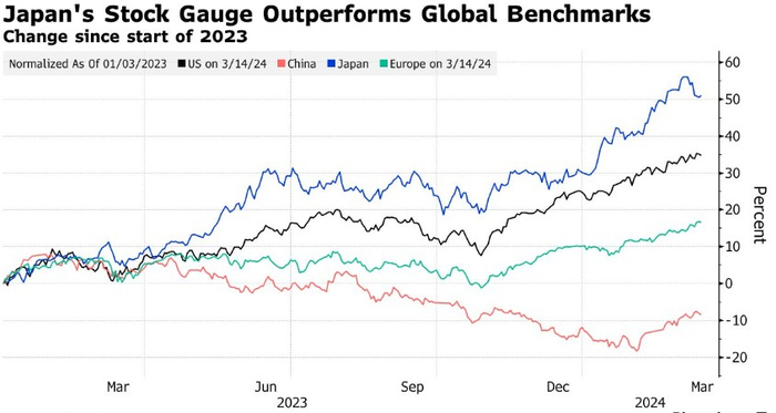 贝莱德公司和英士曼集团都认为,随着经济活力的恢复,日本股市还有进一步上涨的空间。RBC BlueBay资产管理公司将做空10年期日本国债作为其最大的宏观押注,而abrdn plc和Robeco则在做多日元。